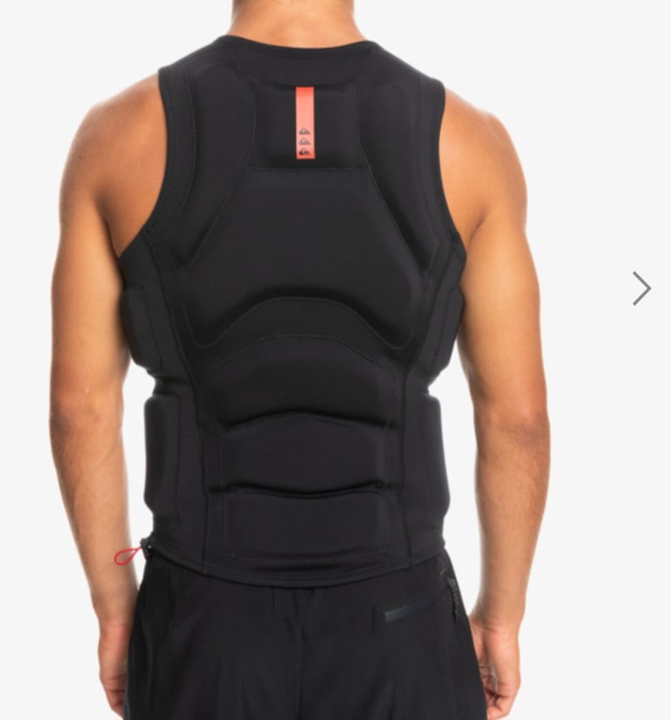 Chaleco de impacto Quiksilver, ligero y flexible, diseñado para ofrecer protección y libertad de movimiento en deportes acuáticos de alta intensidad.